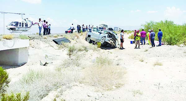 CUATRO CIÉNEGAS, COAH. Una mujer fallecida y tres lesionados, fue el resultado de un accidente ocurrido en la Carretera Federal 30, en donde volcó la camioneta donde viajaba una familia proveniente de Oklahoma, desatando la movilización de autoridades y cuerpos de rescate para brindar los primeros auxilios a los sobrevivientes.